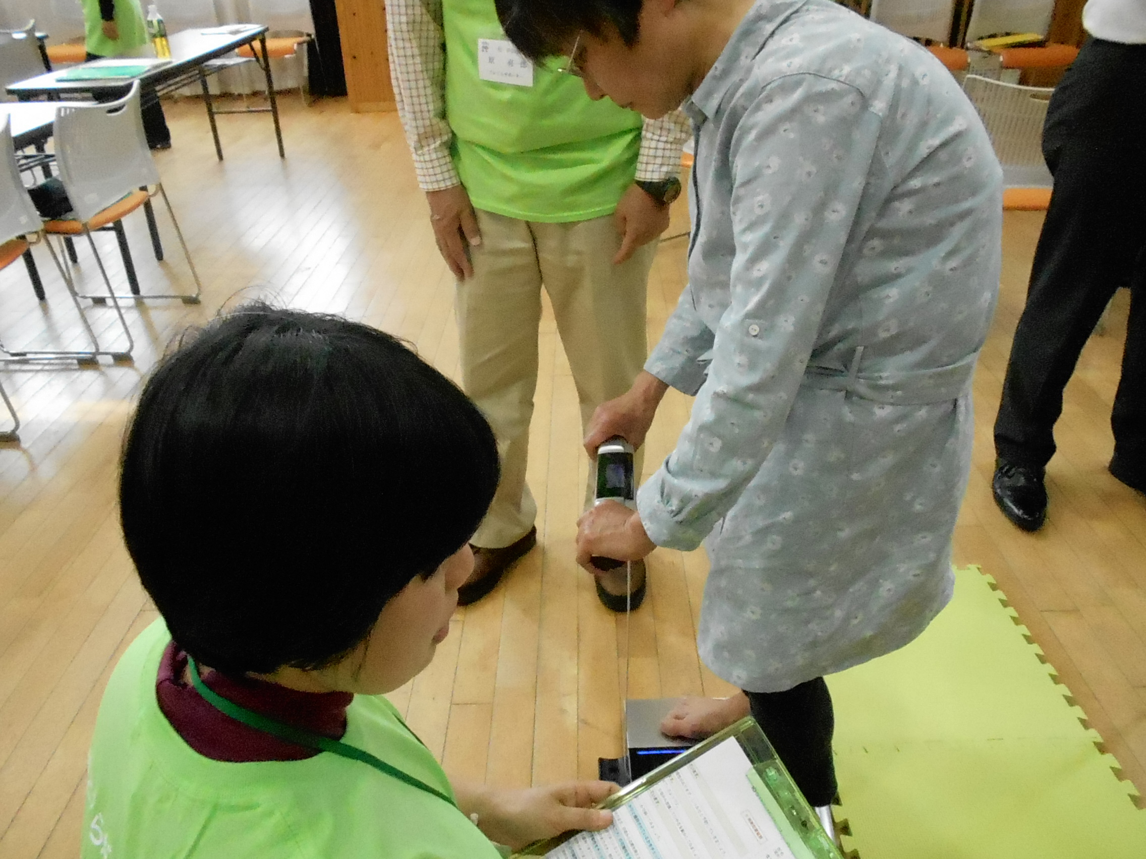 持ち物は、水分補給用の飲み物とタオル。軽装でお出かけください。プログラムの中で、手足の筋肉量を測る際に裸足になっていただく場面があります。