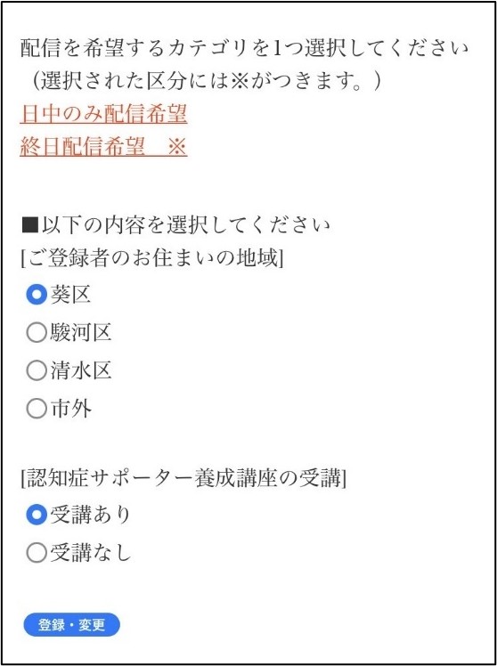- 認知症行方不明者情報(しずメール(日中のみ受信))